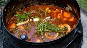 - J'envoie le ragoût à la bouillie gonflée, interviens avec précaution. Je déclenche un petit feu, allume la minuterie pendant 20 minutes.
